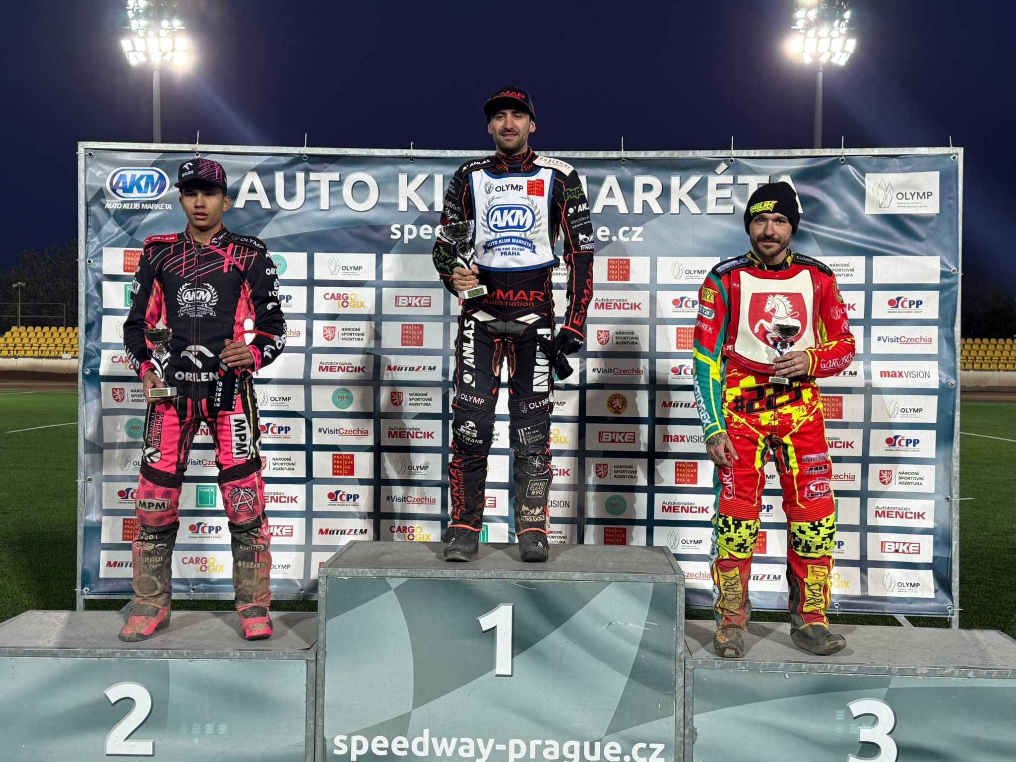 Hlavní stránka Aktuality V Praze se bude rozhodovat o nominacích na ME a MS(Zveřejněno 7.4.2026) Dnes v úterý 7. dubna od 18 hodin se stadion Markéta stane dějištěm druhého závodu letošní sezony. Na programu je důležitý nominační závod, který výrazně promluví do složení české reprezentace pro nadcházející mezinárodní podniky. Hlavním lákadlem večera bude boj o dvě nominační místa do kvalifikací mistrovství světa a další … Prague Open vyhrál Adam Bubba Bednář(Zveřejněno 29.3.2026) Sobotní odpoledne na pražském stadionu Markéta otevřelo domácí plochodrážní sezónu a podnik Prague Open nabídl fanouškům první ostrý pohled na formu jezdců po zimní přestávce. Roli největšího favorita potvrdil bez zaváhání Adam Bubba Bednář, který předvedl dominantní výkon. Ve všech svých jízdách nenašel přemožitele, … Rozlosování startovních čísel na sobotní závod(Zveřejněno 26.3.2026) O účasti jezdců na sobotním závodě jsme vás již informovali. Během dnešního dne proběhlo rozlosování, a proto vám nyní přinášíme kompletní startovní listinu. Z pozice prvního náhradníka odstoupil Jaroslav Petrák, který zatím nedisponuje závodní licencí. Na jeho místo se tak posunul Matěj Tůma. Na startu nebude chybět ani … Prague Open otevře plochodrážní sezonu na Markétě(Zveřejněno 25.3.2026) Už tuto sobotu 28. března od 15:00 odstartuje nová plochodrážní sezona tradičním závodem Prague Open. Oblíbený podnik na stadionu Stadion Markéta nabídne první ostrý test jezdců po zimní přestávce a zároveň slibuje atraktivní podívanou pro všechny fanoušky. Startovní listina závodu je pestrá. Na dráze se představí jak … Chceš zažít závod SGP trochu jinak?(Zveřejněno 12.3.2026) Fanoušci, kteří si chtějí FIM Speedway Grand Prix v Praze užít opravdu naplno, mají možnost povýšit svůj zážitek na úplně novou úroveň. Do prodeje zamířily VIP vstupenky, které nabídnou nejen skvělý zážitek ze závodu, ale také komfort, exkluzivní servis a zážitky, ke kterým se běžní návštěvníci nedostanou. VIP balíčky jsou … Navigace pro příspěvky 1 2 3 … 74 » Partneři